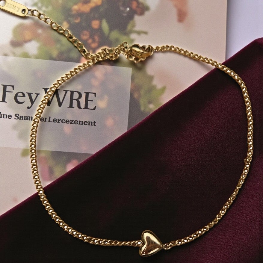 Armband goud met één hartje. Materiaal, stainlessteel goud.
