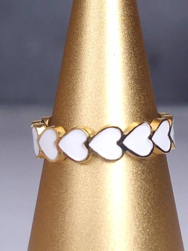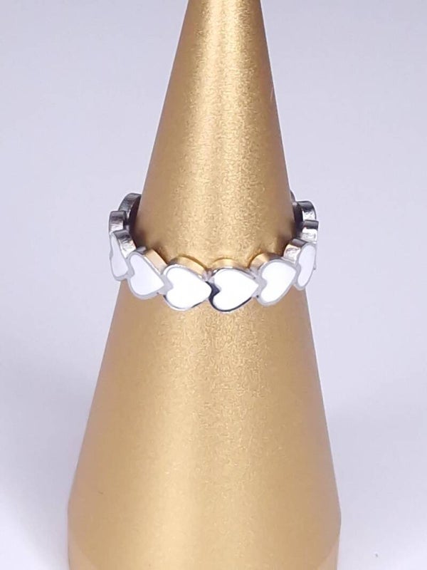 Ring met kleine witte hartjes. Materiaal, stainlessteel.