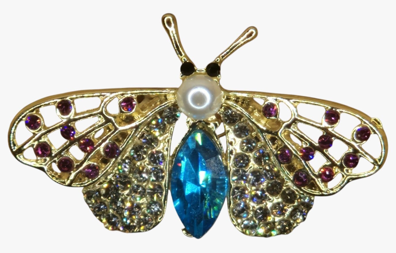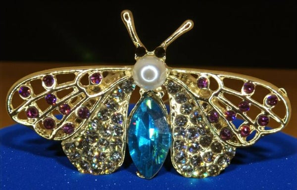 Sprankelend, feestelijk speldje van een prachtige vlinder met strass.