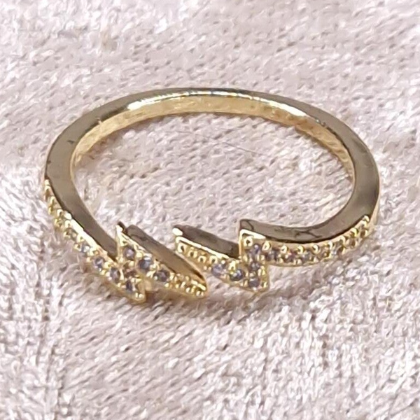Mooie slanke ring met bliksemschicht detail. Materiaal, 18K goldplated.