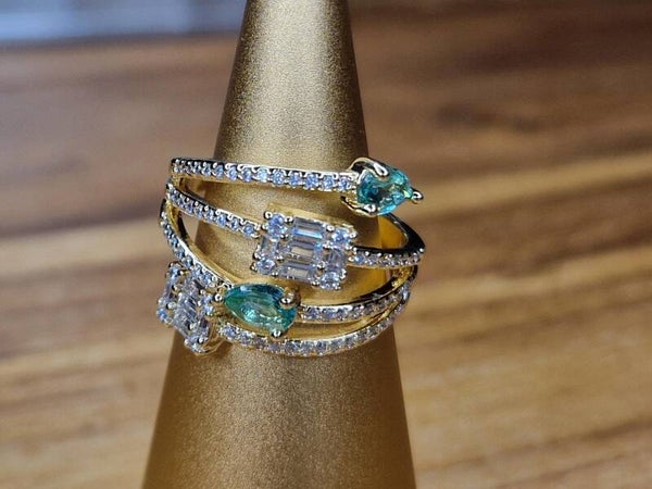 Erg mooie ring ingelegd met turquoise stenen en zirkonia kristal. Staat prachtig om je vinger en zal zeker niet ongezien blijven. Materiaal 18K goldplated van top kwaliteit, verstelbaar.