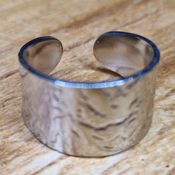 Stoere brede ring met een sjieke uitstraling. Materiaal, stainlessteel zilver.
