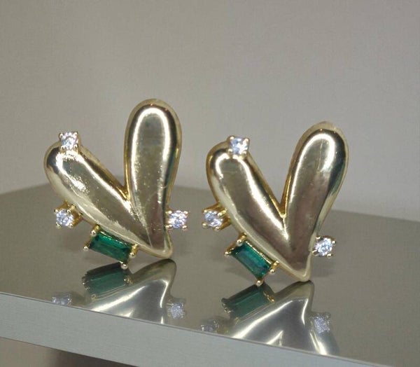 Mooie oorknopjes van hartjes met groene steen en zirkonia kristal. Materiaal, 18K goldplated, top kwaliteit.