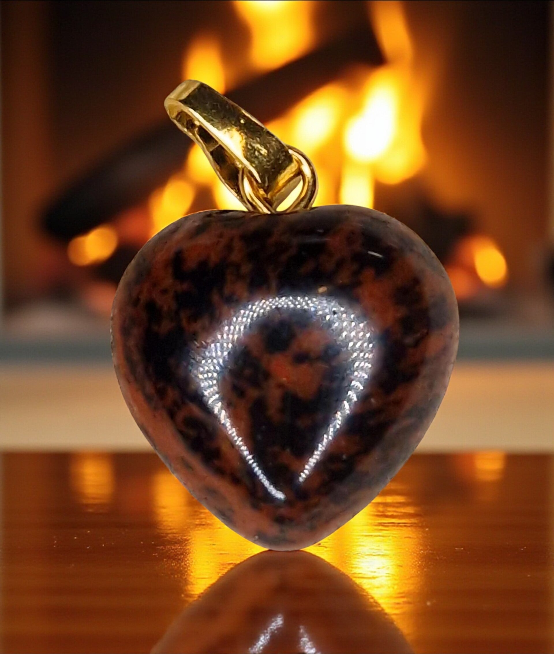 Natuursteen hartjes hanger mahogany jaspis met goudkleurig hangertje.