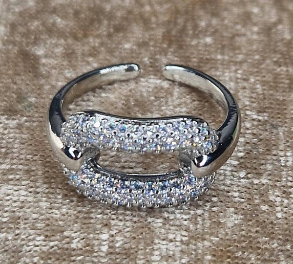 Mooie zilveren platinum plated ring, ingelegd met zirkonia kristal.