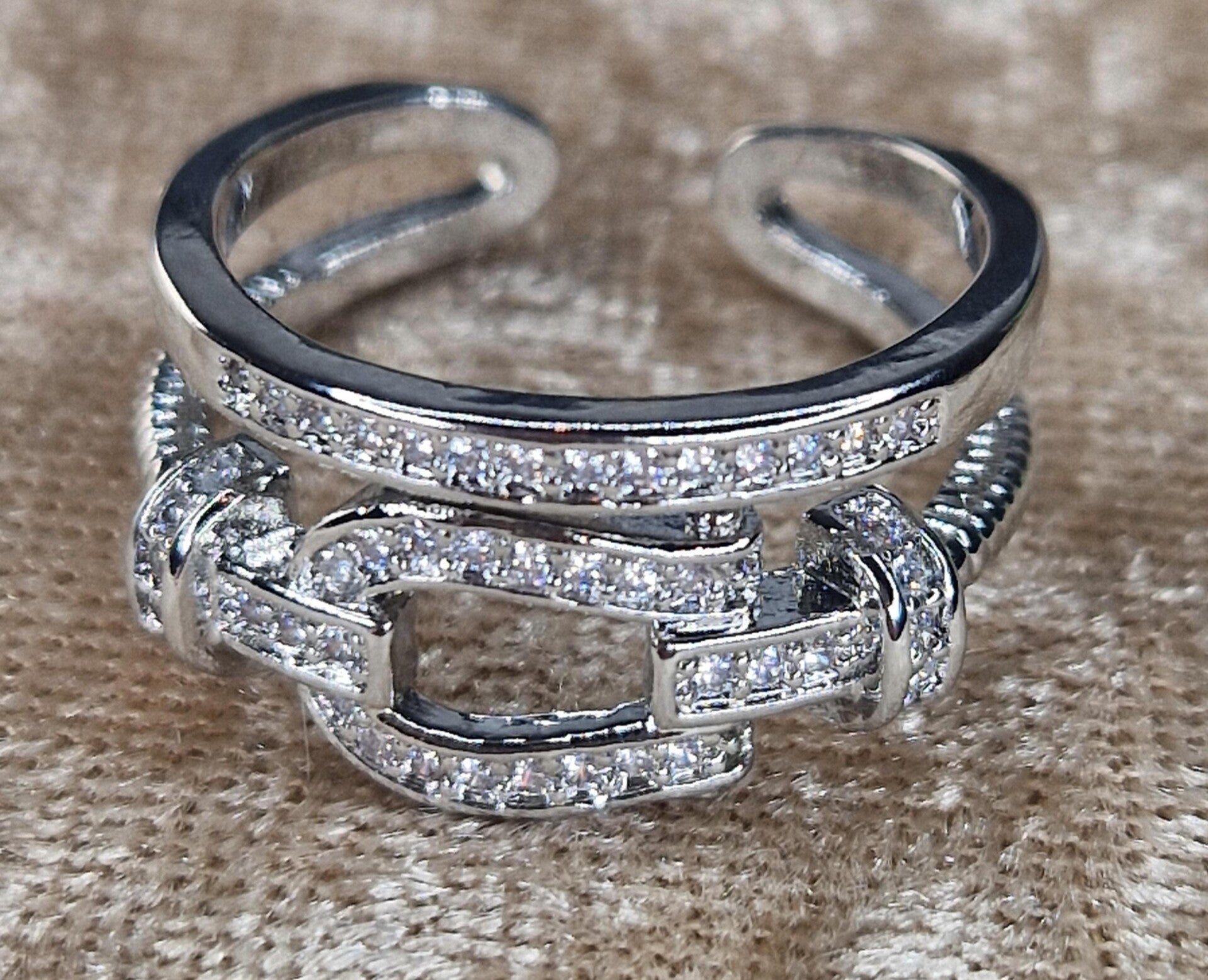 Bijzonder mooie zilveren ring, platinum plated en ingelegd met zirkonia kristal.