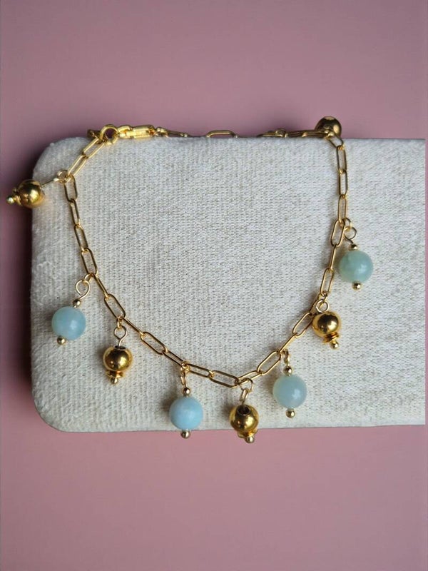 Armband Neva is gemaakt van (half) edelsteen kralen en stainlessteel gouden kralen.