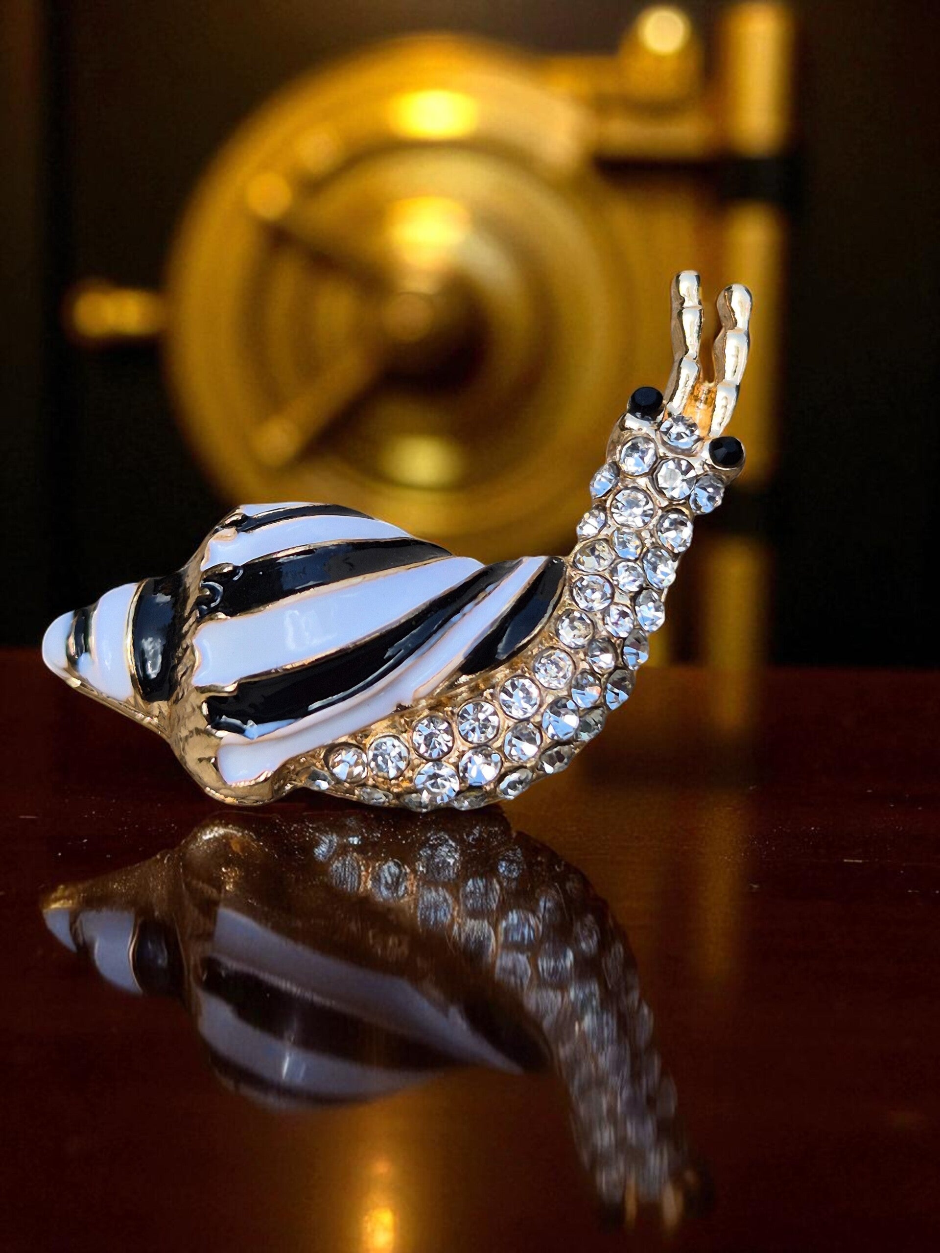 Super schattige, feestelijke pin van een sprankelend slakje belegd met zirkonia kristal.