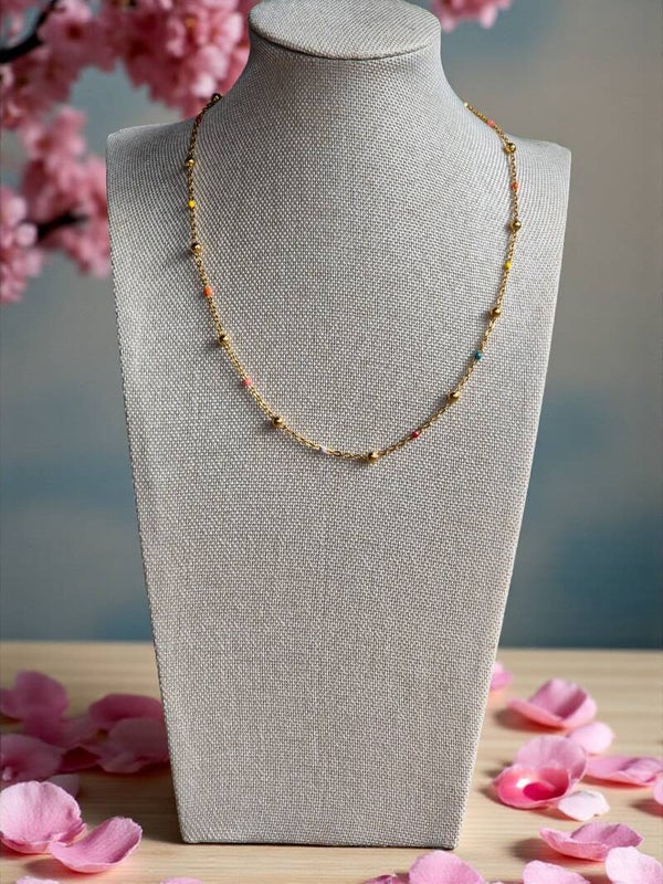 Fleurige gouden ketting met verschillende kleurtjes. Materiaal, stainlessteel.