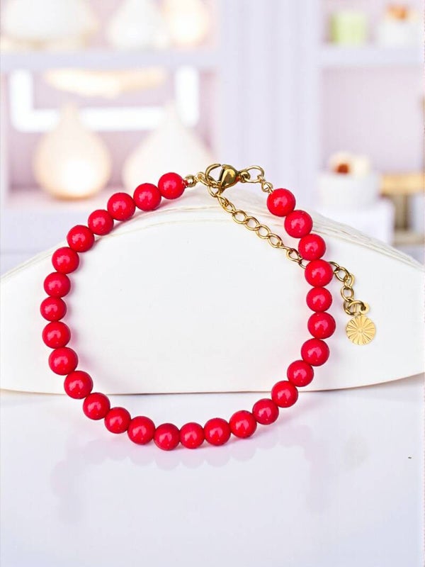 Armband gemaakt van prachtige koraal kralen. Deze armband past bij iedere outfit, maar zal bijzonder mooi staan bij feestelijke aangelegenheden.