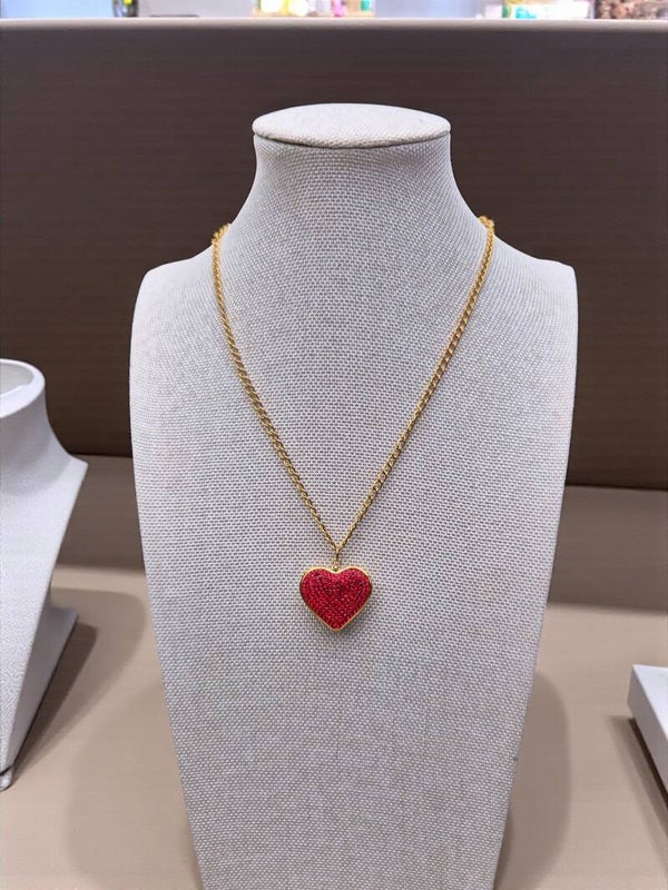 Mooie ketting met goudkleurig hart ingelegd met rode zirkonia kristal. Materiaal, stainlessteel goud. Bijzonder voor iedere gelegenheid, maar "speciaal" voor feestelijke gelegenheden.