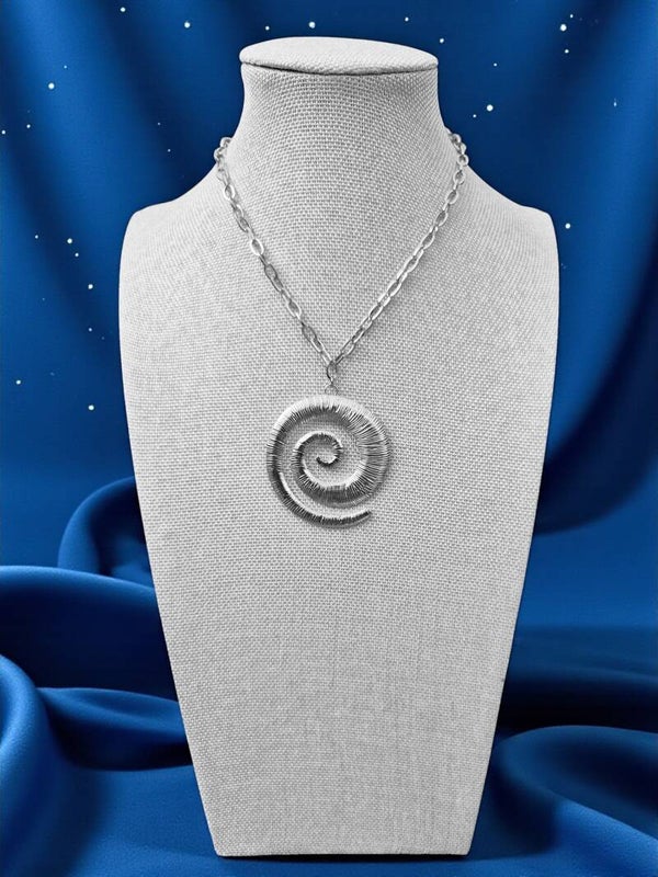 Ketting met mooie grote hanger in spiraal vorm - statement sieraad - ❤️. Materiaal, stainless steel zilver.